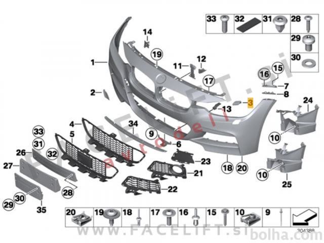 - BMW 3 (tip: F30 / F31) (od 10/2011 do 07/2015) - samo modeli z M odbijačem