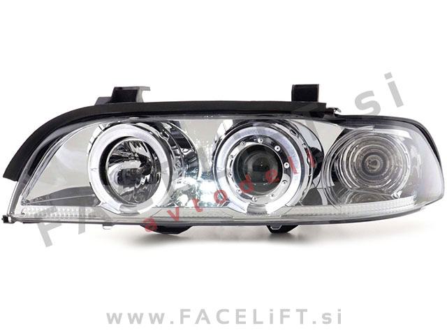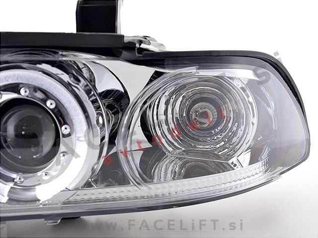 Halogenski žarometi z LED Angel Eyes obročki za pozicijske luči in lečo za kratki snop. Žarometi so novi, z garancijo. V kompletu prejmete par, levi in desni žaromet.