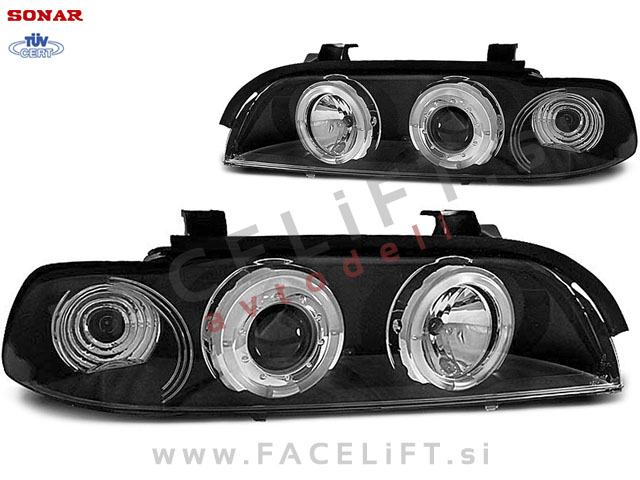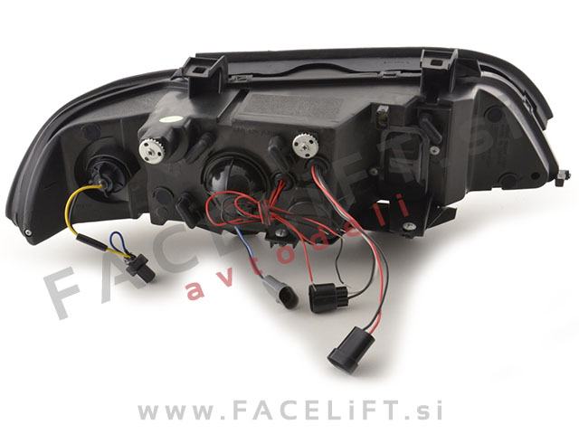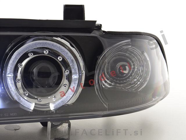 Halogenski žarometi z LED Angel Eyes obročki za pozicijske luči in lečo za kratki snop. Žarometi so novi, z garancijo. V kompletu prejmete par, levi in desni žaromet.