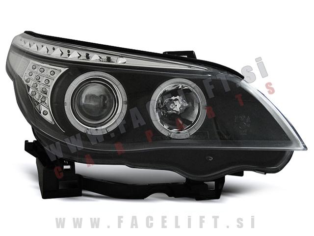 Žarometi z LED Angel Eyes obročki in lečo. Žarometi so novi, z garancijo. V kompletu prejmete par, levi in desni žaromet.