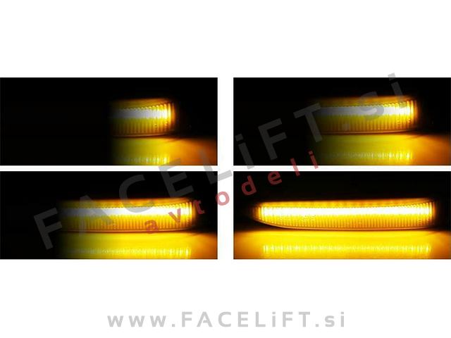 Dinamični bočni LED smerniki, DTS (Dynamic Turn Signals). Smerniki so novi, z garancijo. V kompletu prejmete par.