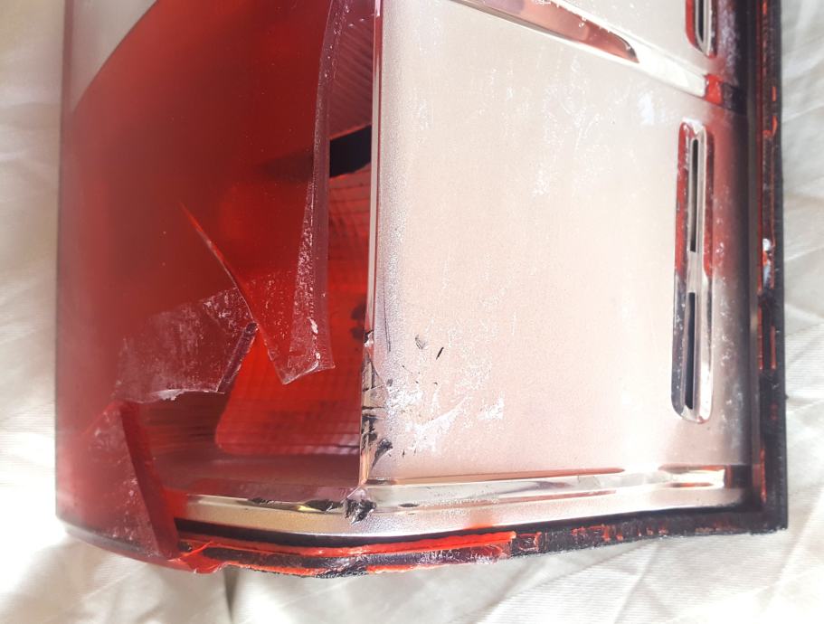Edina pomanjkljivost je, da je del rdeče plastike počen, tam kjer je zadnja rdeča meglenka (vidno s slike).