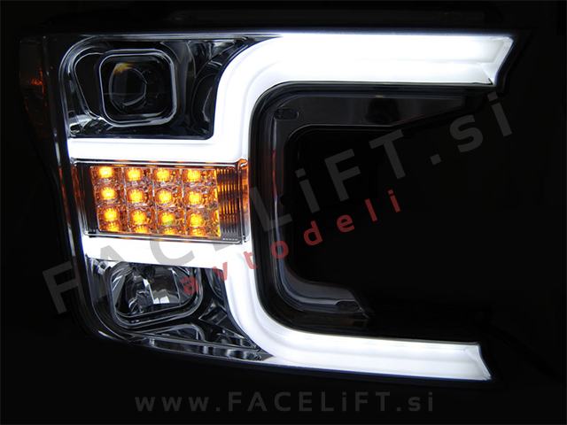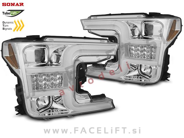 Halogenski žarometi z LED Tube Light pozicijskimi lučmi, dinamičnim LED smernikom (DTS) in lečo za kratki snop. Žarometi so novi, z garancijo. V kompletu prejmete par, levi in desni žaromet.