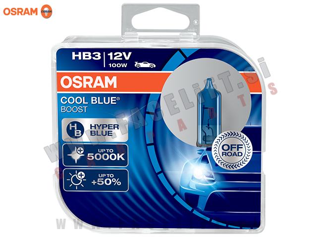 Set halogenskih žarnic Osram Cool Blue Boost 5000K +50% HB3 (9005) 100W 12V. Žarnica so nove. V kompletu prejmete par.