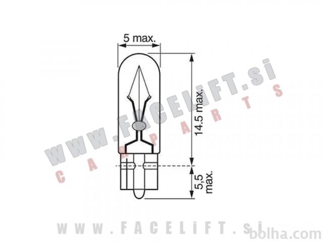 Halogenska žarnica W1,2W (W2x4,6d) Narva. Žarnica je nova.