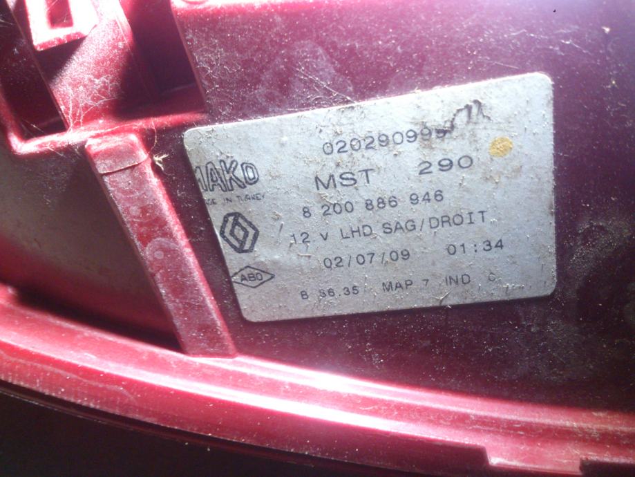 renault clio 3 2009 žaromet luč zadaj zadnja luč desno original