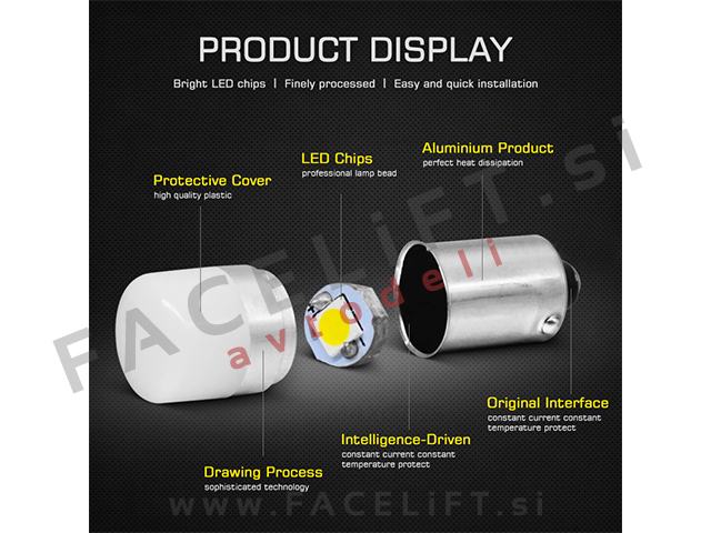 LED žarnica BA9S (H6W). Žarnica je nova, z garancijo. Cena je za en kos.