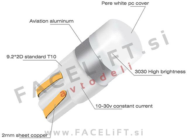 LED žarnica T10 W5W. Žarnica je nova, z garancijo. Cena je za en kos.