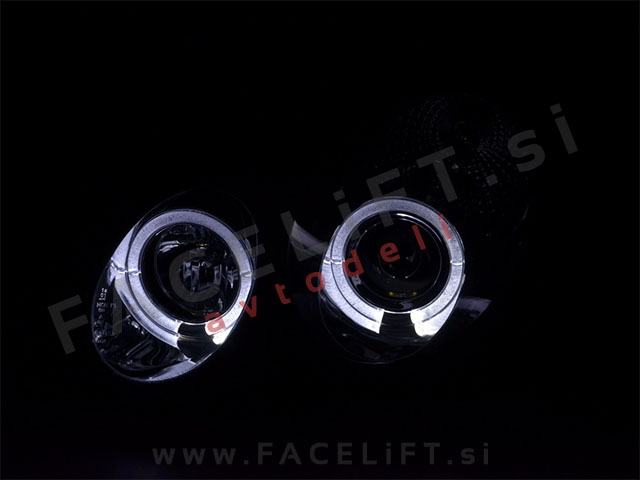 Halogenski žarometi z LED Angel Eyes pozicijskimi lučmi in lečo za kratki snop. Žarometi so novi, z garancijo. V kompletu prejmete par, levi in desni žaromet.