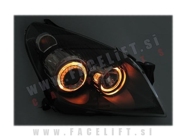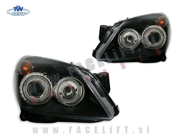 Halogenski žarometi z Angel Eyes pozicijskimi lučmi in lečo za kratki snop. Žarometi so novi, z garancijo. V kompletu prejmete par, levi in desni žaromet.