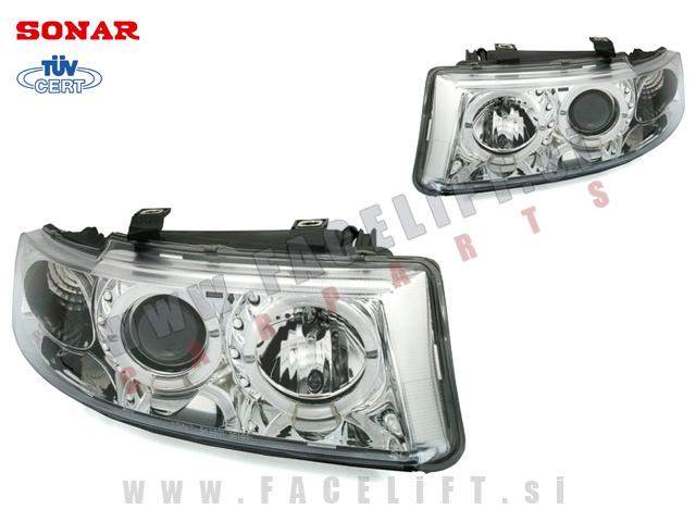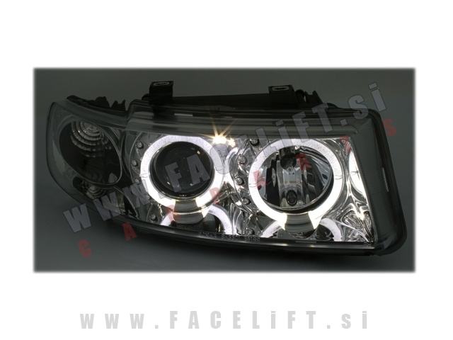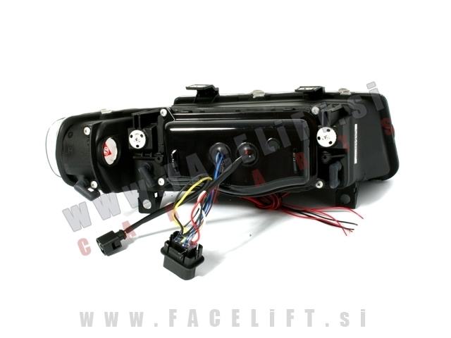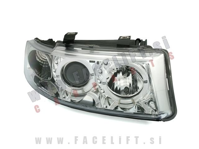 Žarometi z LED Angel Eyes pozicijo in lečo. Žarometi so novi, z garancijo. V kompletu prejmete par, levi in desni žaromet.