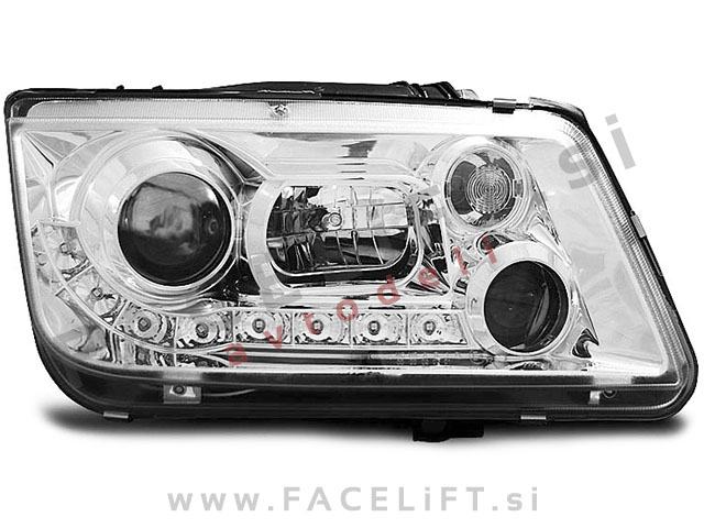Halogenski žarometi z LED pozicijskimi lučmi in lečo za kratki snop. Žarometi so novi, z garancijo. V kompletu prejmete par, levi in desni žaromet.