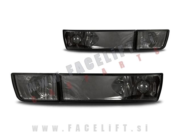 Komplet sprednjih smerokazov z blendo za meglenke za VW Golf 3 od 1991 do 1997. Komplet vsebuje dva smerokaza in dve blendi za meglenke.