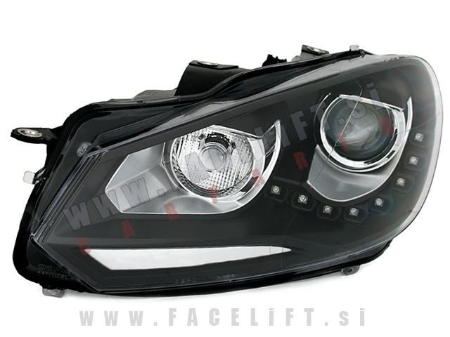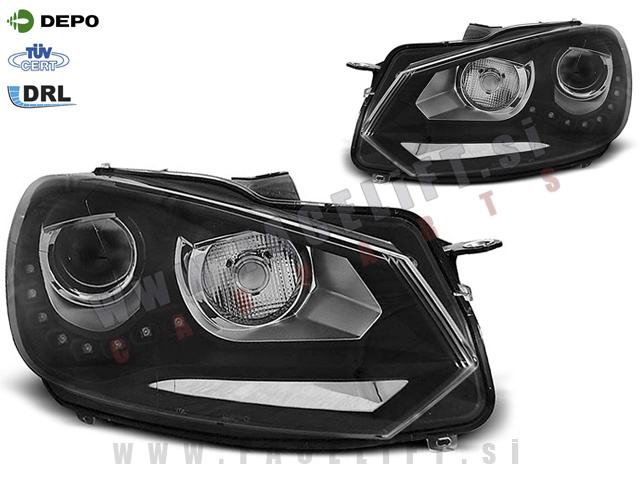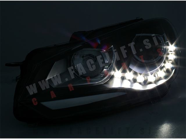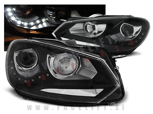 Halogenski žarometi z LED dnevnimi lučmi in lečo. Žarometi so novi, z garancijo. V kompletu prejmete par, levi in desni žaromet.