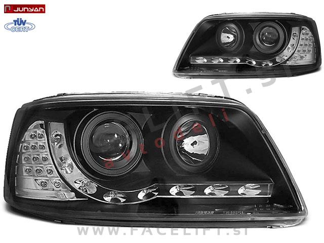 Halogenski žarometi z LED pozicijskimi lučmi in lečo za kratki snop. Žarometi so novi, z garancijo. V kompletu prejmete par, levi in desni žaromet.
