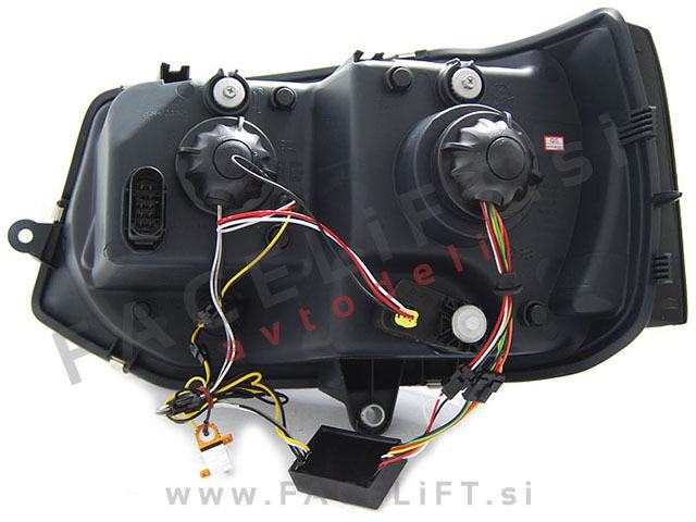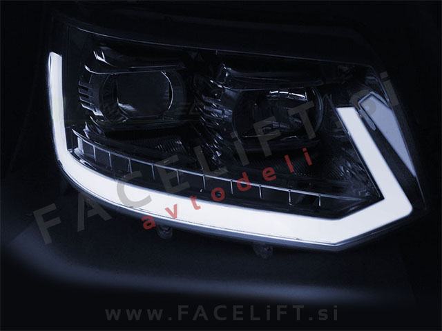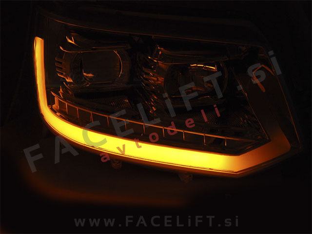 Halogenski žarometi z LED Tube Light dnevnimi lučmi (DRL), lečo za kratki snop in dinamičnim LED smernikom (DTS). Žarometi so novi, z garancijo. V kompletu prejmete par, levi in desni žaromet.