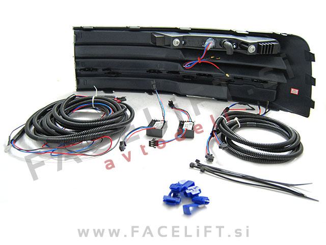 Tipske LED dnevne luči. Dnevne luči so nove, z garancijo. V kompletu prejmete par dnevnih luči vgrajenih v mrežo odbijača, modul in kable za priklop.