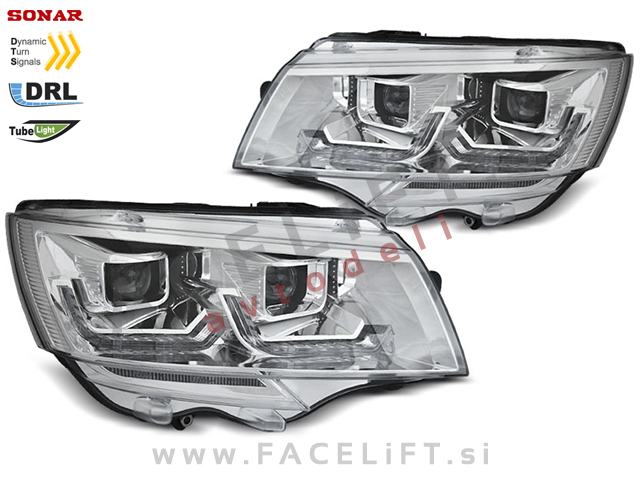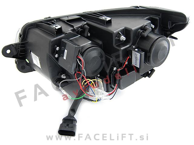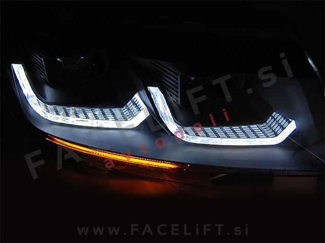 Halogenski žarometi z LED dnevnimi lučmi (DRL), lečo za kratki in dolgi snop in dinamičnimi LED smerniki (DTS). Žarometi so novi, z garancijo. V kompletu prejmete par, levi in desni žaromet.