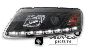 DRL žaromet za Audi A6 (4F). Letnik: 04->08. Tip: črn. DRL Izgled. Cena je za komplet (L + D). Z LED parkirno lučjo.