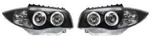 Sprednja luč za BMW serija 1 E87. Letnik: 04-06. Brez motorčka! Črno ozadje. Set dveh kosov: levi+ desni.