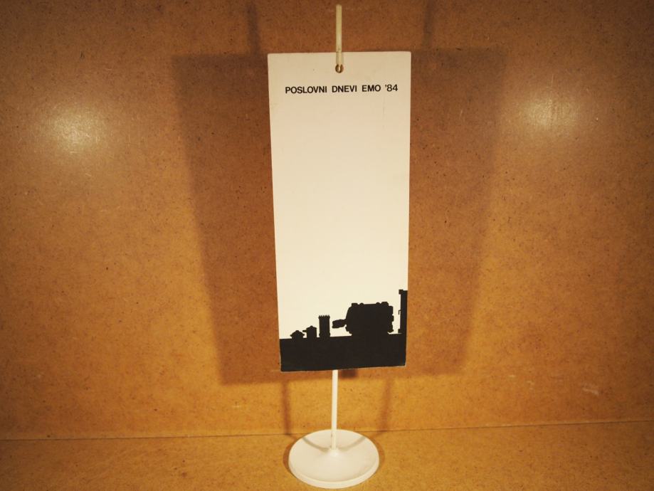 Zastavica POSLOVNI DNEVI EMO 1984, na stojalu.