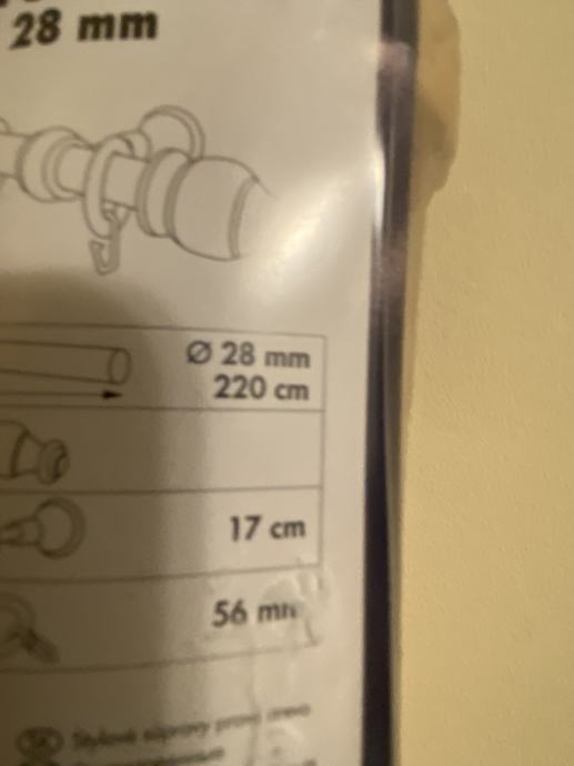 Set za drog za zaveso, čisto nov , zapakiran, 220 cm dolg primer 28mm