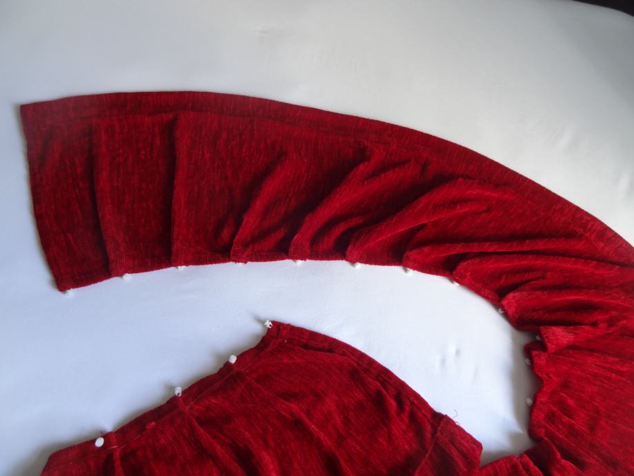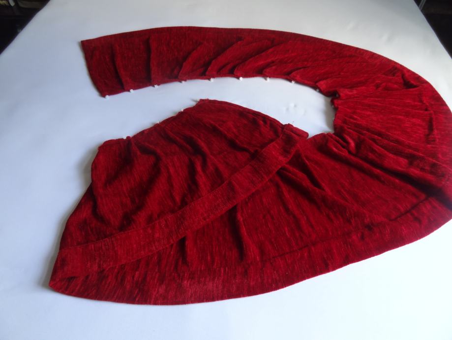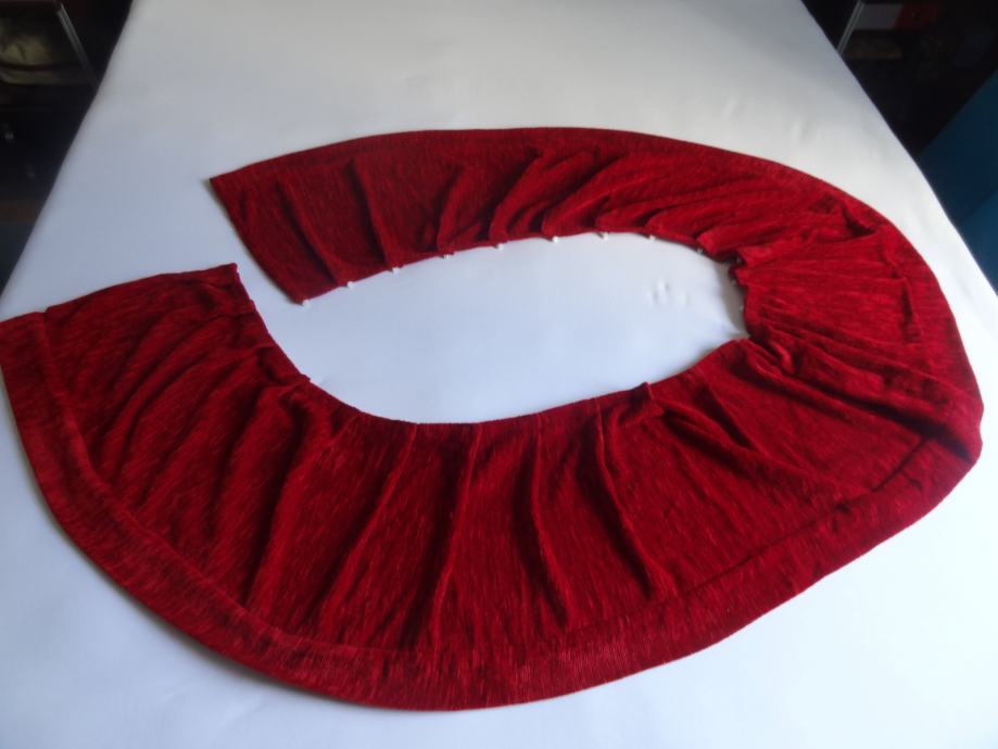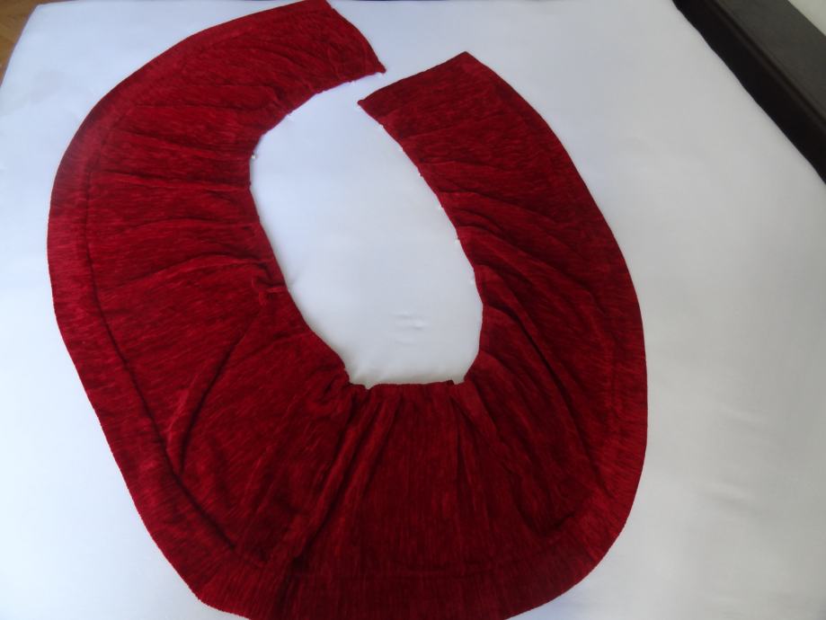 ODLIČNO OHRANJENA OKRASNA ZGORNJA ZAVESA V LEPI RDEČI BARVI IZ REBRASTEGA ŽAMETA - IZDELANA.