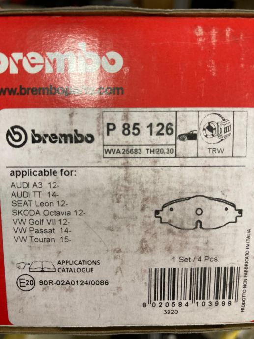 1x KOMPLET ZAVORNIH OBLOG, PLOSCNE (KOLUTNE) ZAVORE S VIJAKI ZA SEDLO KOLUTNE ZAVORE (BREMBO P 85 126) - 20€