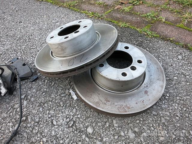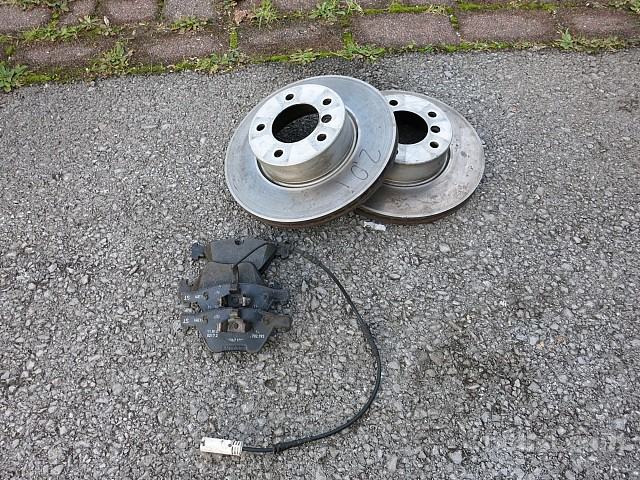 Komplet je original BMW z znakcem diski/ploščice, rabljeno vendar še konkretno uporabno. Očiščeno pripravljeno za vgradnjo, pri meni žal ni pasalo, zadaj zaradi premajhnega notranjega premera.