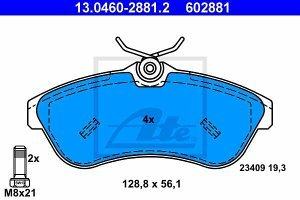 Prednje zavorne obloge 13.0460-2881.2 - Citroen C2, C3. Sirina 128,8 mm, Visina 55,9 mm, Debelina 19,3 mm, brez opozorilnega kontakta obrabe, s priborom, Zavorni sistem Lucas. Cena velja za garnituro.