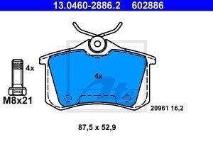 Prednje zavorne obloge 13.0460-2886.2 - Audi, Seat, Škoda, Volkswagen. Zavorne ploščice pretvorijo kinetično energijo s pomočjo trenja dveh ploščic in vrtečega diska. Ponašajo se z visoko kvaliteto in zmogljivostjo ter zagotavljajo optimalno ustvarjanje trenja in toplote, ki omogoči vozilu da se ustavi oziroma se njegova hitrost zmanjša. Lastnosti izdelka: Sirina 87,5 mm, Visina 52,9 mm, Debelina 16,2 mm, brez opozorilnega kontakta obrabe, s vijaki za sedlo kolutne zavore, stevila vijakov 4, Zavorni sistem Lucas / TRW, Kontrolna oznaka E1 90R-01924/729. Cena velja za garnituro.