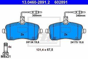 Prednje zavorne obloge 13.0460-2891.2 - Peugeot 407. Sirina 131,4 mm, Visina 66,8 mm, Debelina 18,7 mm, z integriranim senzorjem za obrabo, s vijaki za sedlo kolutne zavore, s priborom, Zavorni sistem Lucas. Cena velja za garnituro.