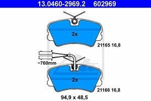 Prednje zavorne obloge 13.0460-2969.2 - Alfa Romeo 33 83-94. Zavorne ploščice pretvorijo kinetično energijo s pomočjo trenja dveh ploščic in vrtečega diska. Ponašajo se z visoko kvaliteto in zmogljivostjo ter zagotavljajo optimalno ustvarjanje trenja in toplote, ki omogoči vozilu da se ustavi oziroma se njegova hitrost zmanjša. Lastnosti izdelka:Sirina 94,9 mm, Visina 48,5 mm, Debelina 16,8 mm, vkl. opozorilni kontakt obrabe, Dolzina opozorilnega kontakta 760 mm, Zavorni sistem Lucas / TRW. Cena velja za garnituro.