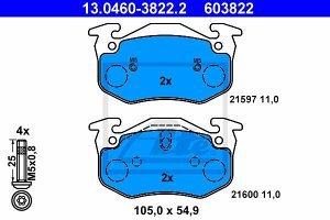 Prednje zavorne obloge 13.0460-3822.2 - Renault. Sirina 105,2 mm, Visina 54,8 mm, Debelina 11 mm, pripravljen za opozorilnik obrabe, s vijaki za sedlo kolutne zavore, Zavorni sistem Bendix, st.izdelka priporocenega pribora 82029500. Cena velja za garnituro.