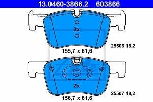 Prednje zavorne obloge 13.0460-3866.2 - BMW Serija 1, 3. Zavorne ploščice pretvorijo kinetično energijo s pomočjo trenja dveh ploščic in vrtečega diska. Ponašajo se z visoko kvaliteto in zmogljivostjo ter zagotavljajo optimalno ustvarjanje trenja in toplote, ki omogoči vozilu da se ustavi oziroma se njegova hitrost zmanjša. Lastnosti izdelka: Sirina 1 155,7 mm, Visina 1 61,6 mm, Sirina 2 156,7 mm, Visina 2 61,6 mm, Debelina 18,2 mm, pripravljen za opozorilnik obrabe, brez opozorilnega kontakta obrabe, Zavorni sistem Bosch, Kontrolna oznaka E1 90R-02A0173/0047. Cena velja za garnituro.