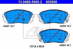 Prednje zavorne obloge 13.0460-5600.2 - Kia Carens, Sportage. Dolzina 137,7 mm, Visina 61 mm, Debelina 16 mm, Kvaliteta 300, Teza 1.790 kg, Izvedba osi Front, Tehnicna informacijska stevilka 181826, Zavorni sistem Kasco, Kontrolna oznaka E9 90R-01111/2232, vkl. opozorilni kontakt obrabe.