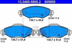Prednje zavorne obloge 13.0460-5800.2 - Toyota Yaris 99-06. Zavorne ploščice pretvorijo kinetično energijo s pomočjo trenja dveh ploščic in vrtečega diska. Ponašajo se z visoko kvaliteto in zmogljivostjo ter zagotavljajo optimalno ustvarjanje trenja in toplote, ki omogoči vozilu da se ustavi oziroma se njegova hitrost zmanjša. Lastnosti izdelka: Sirina 130,7 mm, Visina 1 45 mm, Visina 2 51 mm, Debelina 17 mm, z opozorilnim zvokom obrabe, Zavorni sistem Bosch.