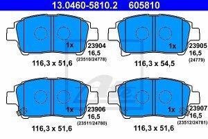 Prednje zavorne obloge 13.0460-5810.2 - Toyota. Zavorne ploščice pretvorijo kinetično energijo s pomočjo trenja dveh ploščic in vrtečega diska. Ponašajo se z visoko kvaliteto in zmogljivostjo ter zagotavljajo optimalno ustvarjanje trenja in toplote, ki omogoči vozilu da se ustavi oziroma se njegova hitrost zmanjša. Lastnosti izdelka: Sirina 116,3 mm, Visina 51,6 mm, Visina 2 54,5 mm, Debelina 16,5 mm, z opozorilnim zvokom obrabe, Zavorni sistem Akebono.