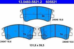 Prednje zavorne obloge 13.0460-5821.2 - Mazda 6 02-08. Lastnosti izdelka: Sirina 132 mm, Visina 59,6 mm, Debelina 18,2 mm, z opozorilnim zvokom obrabe, Zavorni sistem Akebono, st.izdelka priporocenega pribora 82500100. Cena velja za garnituro.