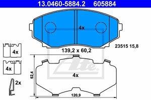 Prednje zavorne obloge 13.0460-5884.2 - Mazda MPV 88-06. Lastnosti izdelka: Dolzina 139,2 mm, Visina 60,2 mm, Debelina 15,8 mm, Kvaliteta 639, Teza 1.744 kg, Izvedba osi Front, Tehnicna informacijska stevilka 141345, Zavorni sistem Sumitomo, Kontrolna oznaka E9 90R-01109/498, vkl. opozorilni kontakt obrabe.