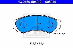 Prednje zavorne obloge 13.0460-5949.2 - Nissan Primera, Sunny. Lastnosti izdelka: Širina 127,6 mm, Visina 50,3 mm, Debelina 16 mm, brez opozorilnega kontakta obrabe, Zavorni sistem Bendix. Cena velja za garnituro.