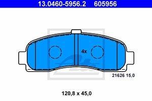 Prednje zavorne obloge 13.0460-5956.2 - Nissan Micra 93-03. Lastnosti izdelka: Sirina 120,9 mm, Visina 44,9 mm, Debelina 15,8 mm, brez opozorilnega kontakta obrabe, Zavorni sistem Akebono, st.izdelka priporocenega pribora 82039500. Cena velja za garnituro.