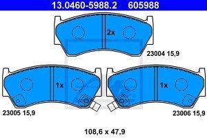 Prednje zavorne obloge 13.0460-5988.2 - Nissan Almera 95-00. Lastnosti izdelka: Sirina 108,5 mm, Visina 47 mm, Debelina 15,5 mm, z opozorilnim zvokom obrabe, Zavorni sistem Akebono, st.izdelka priporocenega pribora 82519800. Cena velja za garnituro.