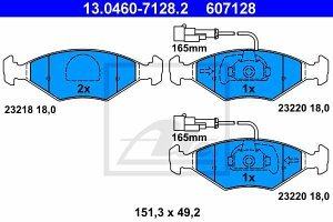 Prednje zavorne obloge 13.0460-7128.2 - Fiat Palio 97-. Lastnosti izdelka: Dolzina 151,38 mm, Visina 49,29 mm, Debelina 18 mm, Kvaliteta 300, Teza 1.260 kg, Izvedba osi Front, Tehnicna informacijska stevilka 181226, Zavorni sistem Ate - Teves, Kontrolna oznaka E9 90R-01111/296, vkl. opozorilni kontakt obrabe.