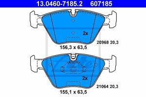 Prednje zavorne obloge 13.0460-7185.2 - BMW. Lastnosti izdelka: Sirina 1 155,3 mm, Sirina 2 156,3 mm, Visina 1 63,9 mm, Visina 2 63,9 mm, Debelina 20,3 mm, pripravljen za opozorilnik obrabe, Zavorni sistem Teves, st.izdelka priporocenega pribora 82028600. Cena velja za garnituro.