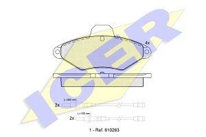 Zavorne obloge za Citroen. Sirina 130,9 mm, Visina 60,6 mm, Debelina 17 mm, vkl. opozorilni kontakt obrabe, Stev. Indikatorjev obrabe 4 p.osi, Zavorni sistem Bendix.