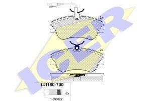 Zavorne obloge za Renault. Sirina 129,9 mm, Visina 63 mm, Debelina 18,4 mm, z integriranim senzorjem za obrabo, Stev. Indikatorjev obrabe 2 p.osi, s vijaki za sedlo kolutne zavore, s priborom, Zavorni sistem Lucas. Cena velja za garnituro.