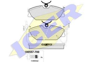 Prednje zavorne obloge IE180557 -Renault 5, Espace. Dolzina 129,9 mm, Visina 55,5 mm, Debelina 18,3 mm, Kvaliteta 300, Teza 1.660 kg, Izvedba osi Front, Tehnicna informacijska stevilka 180557, Zavorni sistem Lucas - Girling, Kontrolna oznaka E1 90R-01030/124, vkl. opozorilni kontakt obrabe.
