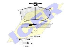 Prednje zavorne obloge IE181117-700 - Mitsubishi Carisma 95-06. Dolzina 119,2 mm, Visina 68,47 mm, Debelina 15,8 mm, Kvaliteta 300, Teza 1.260 kg, Izvedba osi Front, Tehnicna informacijska stevilka 181117-700, Zavorni sistem Lucas - Girling, Kontrolna oznaka E9 90R-01111/096, vkl. opozorilni kontakt obrabe.