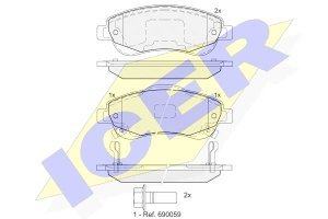 Prednje zavorne obloge IE181887 - Honda CRV. Letnik: 06-. Zavorne ploščice pretvorijo kinetično energijo s pomočjo trenja dveh ploščic in vrtečega diska. Ponašajo se z visoko kvaliteto in zmogljivostjo ter zagotavljajo optimalno ustvarjanje trenja in toplote, ki omogoči vozilu da se ustavi oziroma se njegova hitrost zmanjša. Lastnosti izdelka: Dolzina 151,1 mm, Visina 56,91 mm, Debelina 19,3 mm, Kvaliteta 300, Teza 1.896 kg, Izvedba osi Front, Tehnicna informacijska stevilka 181887, Zavorni sistem Bosch, Kontrolna oznaka E9 90R-01111/2228, vkl. opozorilni kontakt obrabe, Visina 2: 60,51 mm
